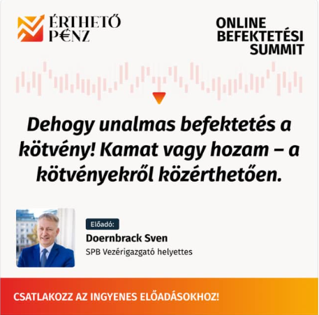 Az előadók között Sven Doernbrack, az SPB Befektetési Zrt. vezérigazgató-helyettese is: „Dehogy unalmas befektetés a kötvény! Kamat vagy hozam – a kötvényekről közérthetően.”
